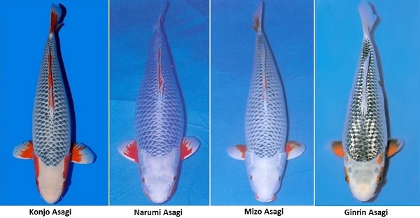 Cá koi asagi gồm có các biến thể phụ của Asagi: