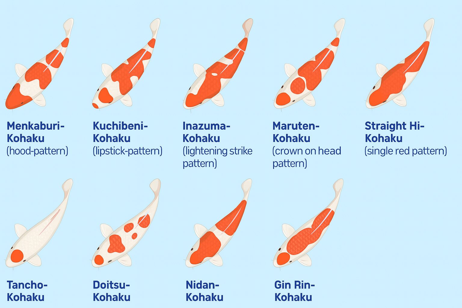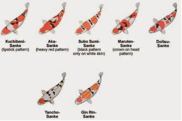 Mỗi biến thể là 1 cách trang trí hoa văn khác nhau trên thân cá nhưng vẫn đảm bảo giữ nét đẹp đặc trưng hai màu trắng và đó của dòng Cá Koi Kohaku.