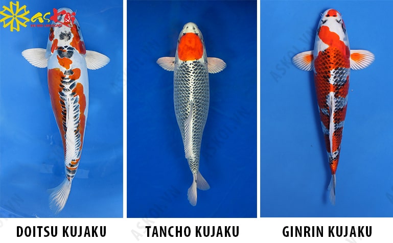 Cá Koi Kujaku có nhiều biến thể khác nhau và có 3 dòng chính, thường được phân loại dựa vào da, vảy, màu sắc, ví dụ như: