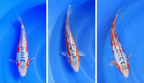 Đặc điểm: Cá Koi Sanke là dòng cá ba màu (tricolour) nổi tiếng Nhật Bản xuất hiện từ thời đại Taisho (1912–1926) khi lai tạo từ Kohaku và Shiro Bekko, cùng nhóm thuộc “Gosanke” cùng với Kohaku và Showa.