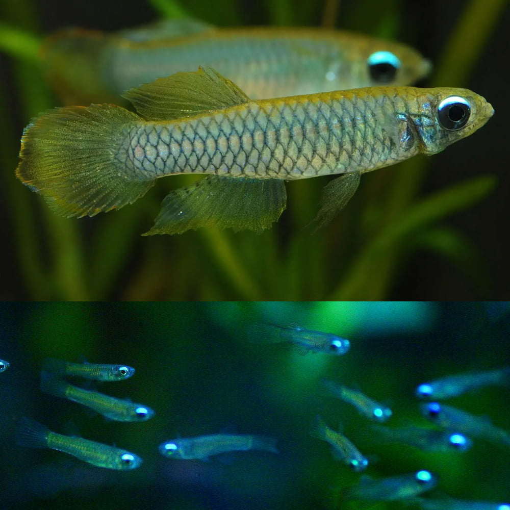 Cá mắt đèn (Norman's lampeye) là loài cá nhỏ bé đến từ vùng sông ngòi, đầm lầy Trung và Tây Phi. Thân cá tròn trịa, vây lớn bo tròn, miệng hướng lên giúp chúng dễ dàng bắt mồi bề mặt, nổi bật nhất chính là “mắt đèn” - lớp phản quang xanh bạc trên mắt, kéo dài 1 đường từ mắt đến đuôi, tạo cảm giác như một chiếc đèn di động .