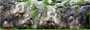 Stone wall with moss closeup. Nature Texture