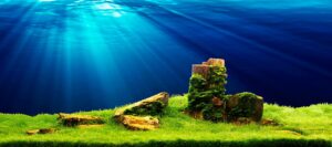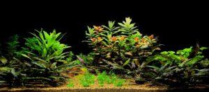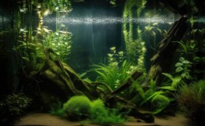 aquarium filled with diverse aquatic plants and seagrasses, including floating and rooted species, created with generative ai